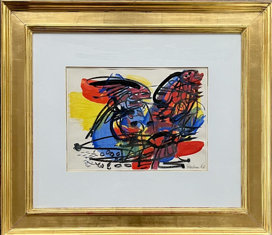 Anton Rooskens – gouache uit 1967 Written by Abstracte compositie, zonder titel Gesigneerd rechts-onder met toevoeging jaartal Papierafmetingen 27 x 37 cm Afmetingen van de prachtige lijst 61 x 71 cm Prijs 4.500,= Interesse? Uw naam Uw e-mailadres Uw telefoonnummer Uw vraag of bericht